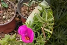 大花马齿苋:一年生草本,高10-30厘米。茎平卧或斜升,紫红色,多分枝,节上丛生毛。叶密集枝端,较下的叶不规则互生,叶片细圆柱形,无毛。花单生或数朵簇生枝端,直径2.5-4厘米,…全部>>