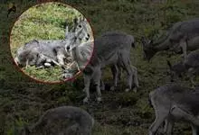 喜马拉雅斑羚,又名青羊、山羊、斑羚、居里子、岩羊、灰包羊、野羊、麻羊、然给,是偶蹄目牛科斑羚属哺乳动物。体形较小,平均体长1米左右,肩高约51厘米;颌下无须;雌雄两性均具角,角较细短,…全部>>