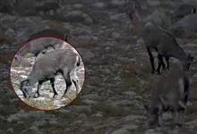 岩羊是偶蹄目牛科岩羊属哺乳动物。颜色与岩石相像,两性皆具角,雄羊角大而弯曲,角外表具不明显的横棱且体壮实,雌羊角短小;头较小,眼大,耳小,颏下无须;体背面为棕灰或石板灰色略有蓝色反光,…全部>>