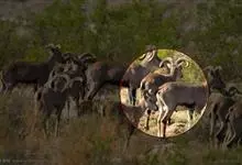 岩羊是偶蹄目牛科岩羊属哺乳动物。颜色与岩石相像,两性皆具角,雄羊角大而弯曲,角外表具不明显的横棱且体壮实,雌羊角短小;头较小,眼大,耳小,颏下无须;体背面为棕灰或石板灰色略有蓝色反光,…全部>>