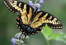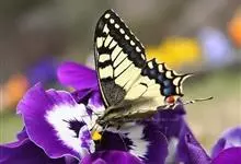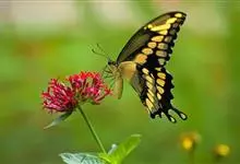 金凤蝶,是鳞翅目凤蝶科凤蝶属动物。金凤蝶为中型凤蝶,翅展70-84毫米,翅背面底色黑褐色,翅脉黑色,翅室具黄斑;前翅背面基部呈暗黄色,亚外缘为黑色,内具一列小黄斑;后翅背面亚外缘区具黑宽边,…全部>>