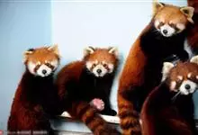 小熊猫:是小熊猫科、小熊猫属的一种动物。雌雄相似,不存在二态性。外形像猫,但较猫肥大,全身红褐色。圆脸,吻部较短,脸颊有白色斑纹。耳大,直立向前。四肢粗短,为黑褐色。尾长、较粗而蓬松,…全部>>