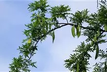 美国皂荚是豆科皂荚属植物,落叶乔木或小乔木,高可达45米;树皮灰黑色,厚1-2厘米,具深的裂缝及狭长的纵脊。叶为一回或二回羽状复叶,长11-22厘米。…全部>>