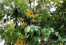 腊肠树:落叶乔木,高可达15米;枝细长;树皮灰色,老时粗糙,暗褐色。叶长30-40厘米,小叶对生,薄革质,阔卵形,卵形或长圆形,边全缘,幼嫩时两面被微柔毛,老时无毛;叶脉纤细,两面均明显。总状花序长…全部>>