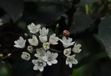 蝴蝶戏珠花 Miq.)是荚蒾科荚蒾属植物。落叶灌木,高达3米;当年小枝浅黄褐色。叶较狭,宽卵形或矩圆状卵形,有时椭圆状倒卵形。花序直径4-10厘米,外围有4-6朵白色、木型的不孕花。果实先红色后变黑色,…全部>>