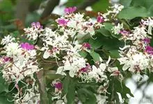 短萼仪花是豆科、仪花属乔木,高可达20米,小叶近革质,长圆形、倒卵状长圆形或卵状披针形,圆锥花序,苞片和小苞片白色,阔卵形、卵状长圆形或长圆形,萼管较短,裂片长圆形至阔长圆形,比萼管长;花瓣倒卵形,…全部>>