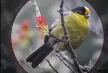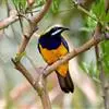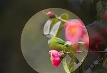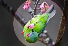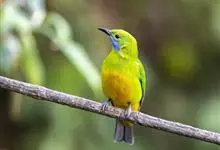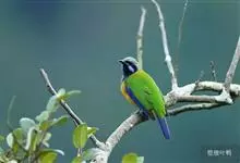 橙腹叶鹎体形大小和金额叶鹎相似,体长16~20厘米。额至后颈黄绿色,其余上体绿色,小覆羽亮钴蓝色,形成明显的肩斑。颏、喉、上胸黑色具钴蓝色髭纹,其余下体橙色。飞羽和尾羽雄鸟黑色、雌鸟绿色。…全部>>