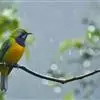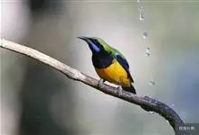 橙腹叶鹎体形大小和金额叶鹎相似,体长16~20厘米。额至后颈黄绿色,其余上体绿色,小覆羽亮钴蓝色,形成明显的肩斑。颏、喉、上胸黑色具钴蓝色髭纹,其余下体橙色。飞羽和尾羽雄鸟黑色、雌鸟绿色。…全部>>