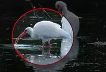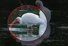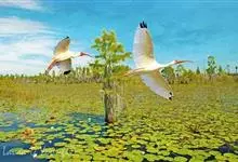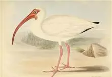 美洲白鹮:是一种大型涉禽。体长56-58厘米,体重750-1050克。头和颈裸出,喙很长,向下弯曲。飞行时颈和脚伸直,交替地拍动翅膀和滑翔。成年美洲白鹮,除了嘴和腿部是橘红色,翅膀末端有黑色外,…全部>>