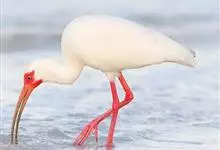 美洲白鹮:是一种大型涉禽。体长56-58厘米,体重750-1050克。头和颈裸出,喙很长,向下弯曲。飞行时颈和脚伸直,交替地拍动翅膀和滑翔。成年美洲白鹮,除了嘴和腿部是橘红色,翅膀末端有黑色外,…全部>>