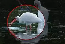 美洲白鹮:是一种大型涉禽。体长56-58厘米,体重750-1050克。头和颈裸出,喙很长,向下弯曲。飞行时颈和脚伸直,交替地拍动翅膀和滑翔。成年美洲白鹮,除了嘴和腿部是橘红色,翅膀末端有黑色外,…全部>>