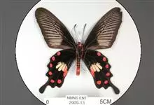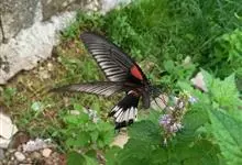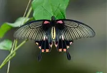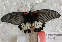 玉斑凤蝶Papilio helenus 别名白纹凤蝶,是凤蝶科凤蝶属美凤蝶亚属大型种类。雌雄同型;体翅皆黑色,后翅正面中室外有3个并列的白色斑,亚外缘有1列模糊的新月形红色斑,…全部>>