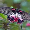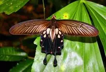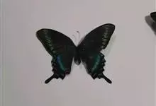 美凤蝶又名多型蓝凤蝶、大凤蝶,是鳞目凤蝶科凤蝶属动物。美凤蝶雄蝶无尾突,翅黑色,正面各翅室中部有深色条纹,分布蓝色鳞片,反面前后翅基部有红斑,后翅臀角有环状红斑。雌蝶具多型,前翅浅灰色,外缘和翅脉黑色,…全部>>