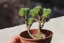 小松绿是景天科景天属植物,多肉植物,植株低矮,多分枝,株型近似球状,新枝浅绿色,以后逐渐转为灰白色,肉质叶近似针状。枝条下部的老叶容易干枯,贴在枝干上,形成类似松树皮般的龟裂,数月才脱落,…全部>>