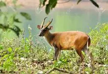 赤麂是鲸偶蹄目鹿科麂属哺乳动物,又名红麂、印度麂、角麂、吠鹿。脸部较狭长,额部V字形黑纹特别明显,四肢细长;雄性有角;雌兽无角,但额顶的相应部位微有突起,并有成束的黑毛。体毛多赤褐色,…全部>>