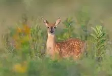 狍是鹿科、狍属的一种动物。体长约1.2米,体重约30千克,有着细长颈部及大眼睛,大耳朵。无獠牙,后肢略长于前肢,尾短,雄狍有角,雌性无角,雄性长角只分三个叉。狍身草黄色,尾根下有白毛,尾巴仅2-3厘米。…全部>>