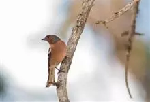 红额金翅雀:共有14个亚种。小型鸟类,体长12-14厘米。额、脸颊和颏朱红色,眼先和眼周黑色,在淡色的头部极为醒目。上体灰褐或乌褐色,尾上覆羽白色,两翅和尾黑色,翅上有黄色斑。下体喉、胸灰褐或乌褐色…全部>>