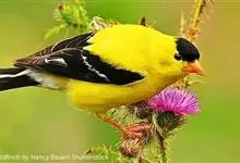 金翅雀:是雀形目雀科金翅雀属的小型鸟类。体长12-14厘米。嘴细直而尖,基部粗厚,头顶暗灰色。背栗褐色具暗色羽干纹,腰金黄色,尾下覆羽和尾基金黄色,翅上翅下都有一块大的金黄色块斑,…全部>>