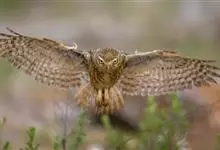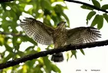 靴隼雕:是鸟纲、鹰科的中型鹰类。全长约40-53厘米,头、颈白色沾棕,纵贯以暗褐色轴纹,眉纹黑色。上体深褐色,肩羽略淡。初级飞羽黑色,翅下覆羽白色,尾灰褐色,先端色较浅,有4-5条不明显的深色横斑。…全部>>