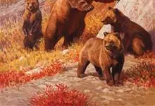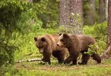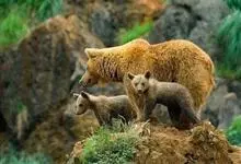 棕熊是熊科熊属哺乳动物。体形健硕,肩背隆起,身后长有一条短尾。毛色多为棕褐色或棕黄色;老年呈银灰色;幼年为棕黑色。野生条件下寿命为20—30年。棕熊分布广泛,主要分布在欧亚大陆和北美,…全部>>