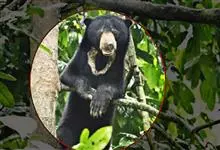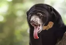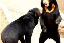 马来熊,是食肉目熊科马来熊属哺乳动物。体胖颈短,眼睛和耳朵小;头部短圆;全身乌黑光滑;鼻唇周为棕黄色,裸露无毛;眼圈为灰褐色,趾基部连有短蹼;胸斑中央有一个毛旋,颈部周围的一圈皮肤极松弛,…全部>>
