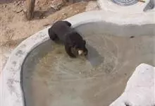 马来熊,是食肉目熊科马来熊属哺乳动物。体胖颈短,眼睛和耳朵小;头部短圆;全身乌黑光滑;鼻唇周为棕黄色,裸露无毛;眼圈为灰褐色,趾基部连有短蹼;胸斑中央有一个毛旋,颈部周围的一圈皮肤极松弛,…全部>>