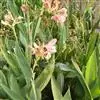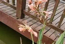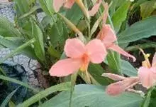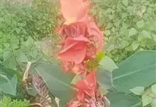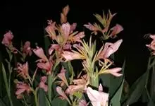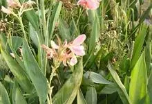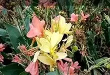 粉美人蕉:是一种球根草本植物。根茎延长,株高1.5-2米;茎绿色。叶片披针形;总状花序疏花,单生或分叉,稍高出叶上;苞片圆形,褐色,花黄色,无斑点;有多种园艺栽培品种,颜色从粉、橙红色及具带红色斑点…全部>>