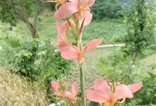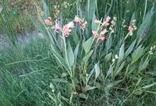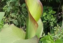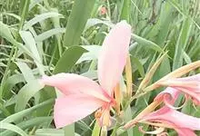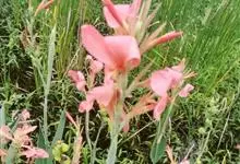 粉美人蕉:是一种球根草本植物。根茎延长,株高1.5-2米;茎绿色。叶片披针形;总状花序疏花,单生或分叉,稍高出叶上;苞片圆形,褐色,花黄色,无斑点;有多种园艺栽培品种,颜色从粉、橙红色及具带红色斑点…全部>>