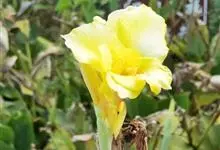 粉美人蕉:是一种球根草本植物。根茎延长,株高1.5-2米;茎绿色。叶片披针形;总状花序疏花,单生或分叉,稍高出叶上;苞片圆形,褐色,花黄色,无斑点;有多种园艺栽培品种,颜色从粉、橙红色及具带红色斑点…全部>>