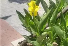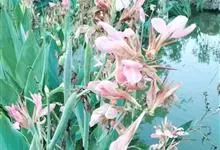粉美人蕉:是一种球根草本植物。根茎延长,株高1.5-2米;茎绿色。叶片披针形;总状花序疏花,单生或分叉,稍高出叶上;苞片圆形,褐色,花黄色,无斑点;有多种园艺栽培品种,颜色从粉、橙红色及具带红色斑点…全部>>