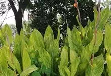 金脉美人蕉叶片淡黄色,叶脉绿化,叶缘具红边,全缘,大花美人蕉之变种全部>>