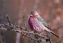 红眉朱雀:体长15厘米,是一种中等体型的朱雀。上体褐色斑驳,眉纹、脸颊、胸及腰淡紫粉,臀近白。雌鸟无粉色,但具明显的皮黄色眉纹。雄雌两性均甚似体型较小的曙红朱雀,但嘴较粗厚且尾的比例较长。…全部>>