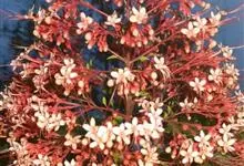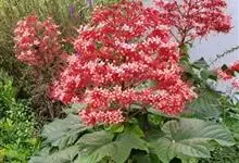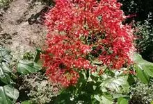 赪桐 Sweet)是唇形科、大青属灌木,高1-4米,叶片圆心形,顶端尖或渐尖,基部心形,边缘有疏短尖齿,表面疏生伏毛,二歧聚伞花序组成顶生,大而开展的圆锥花序,花序的最后侧枝呈总状花序,花萼红色,…全部>>