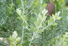 银合欢 de Wit)是豆科银合欢属的小乔木。银合欢幼枝被短柔毛,老枝无毛,具褐色皮孔,无刺;托叶三角形;叶轴被柔毛,线状长圆形,先端急尖,基部楔形;总花梗花白色;花萼外面被柔毛;花瓣狭倒披针形,…全部>>