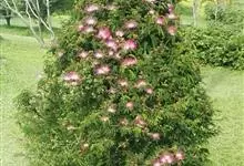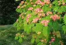 合欢,又名马缨花、绒花树、夜合合等,为豆科合欢属的一种落叶乔木。合欢的树高可达16米,人工特别养护的可达30米,树冠开展;二回羽状复叶,…全部>>