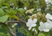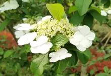 蝴蝶戏珠花 Miq.)是荚蒾科荚蒾属植物。落叶灌木,高达3米;当年小枝浅黄褐色。叶较狭,宽卵形或矩圆状卵形,有时椭圆状倒卵形。花序直径4-10厘米,外围有4-6朵白色、木型的不孕花。果实先红色后变黑色,…全部>>