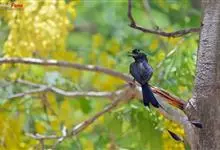 大盘尾:是雀形目卷尾科的鸟类,共有13个亚种。外形和小盘尾相似,但体型较大,体长约33厘米,加上延长的尾羽,可达66厘米。通体黑色,额部羽簇长而卷曲,形成直立向上的羽冠。尾叉状,…全部>>