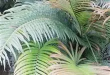 苏铁蕨是乌毛蕨科苏铁蕨属植物。根状茎粗壮,木质,直立圆柱状,直径达15厘米或更粗,高达1.5米或过之;鳞片红棕色或深棕色,有光泽,线状狭长披针形。叶簇生,叶柄禾秆色至深禾秆色,光滑或下部略粗糙,…全部>>