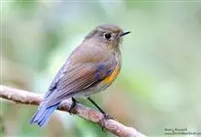 红胁蓝尾鸲俗名:蓝点冈子、蓝尾巴根子、蓝尾杰、蓝尾欧鸲。体型略小而喉白的鸲。特征为橘黄色两胁与白色腹部及臀成对比。雄鸟上体蓝色,眉纹白;亚成鸟及雌鸟褐色,尾蓝。…全部>>