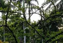 铁西瓜为紫葳科、葫芦树属的常绿小乔木,高5~18米,为典型的热带雨林“老茎生花”植物。其花、果单生于小枝或老茎上;花冠钟形,淡绿黄色,具褐色脉纹,春夏开花。全部>>
