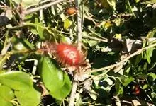 金樱子为常绿攀援灌木,高可达5米。小枝粗壮,散生扁弯皮刺,无毛,幼时被腺毛,老时逐渐脱落减少。小叶革质;小叶片边缘有锐锯齿;小叶柄和叶轴有皮刺和腺毛;托叶离生或基部与叶柄合生,边缘有细齿,齿尖有腺体。…全部>>