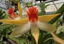 翅萼石斛是兰科石斛属的植物。茎肉质状粗厚,不分枝,干后为金黄色;叶革质,呈长圆形或舌状长圆形;总状花序出自近茎端,花苞片卵形,子房黄绿色,呈三棱形,花有橘子香气,萼囊淡黄色带橘红色,呈角状,花瓣为白色,…全部>>