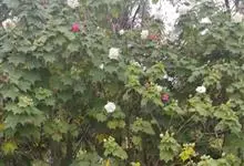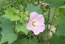 木芙蓉,锦葵科木槿属落叶灌木或小乔木。小枝上有细绒毛;叶片为卵状心形,托叶为披针形,常早落;花单生,花萼为钟形,花冠初为白色或淡红色,后逐渐变为深红色;果实为扁球形,有淡黄色的毛附着。花期8到10月。…全部>>