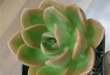 红缘莲花掌属蔷薇目、景天科植物,原产大西洋的加那利群岛。质厚,蓝绿色,被白霜,叶缘红褐色。聚伞花序,花浅黄色,有时带红晕。叶形叶色较美,有一定的观赏价值,多盆栽用于点缀室内;可放置于电视、电脑旁,…全部>>