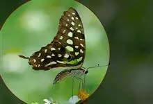 青带凤蝶Graphium sarpedon ,又名青凤蝶,是最普遍的中型凤蝶,飞行速度很快。青带凤蝶的翅膀中央有许多浅蓝色的斑点,很整齐地排列成一条直线。这些斑点由上而下逐渐变大,就像一条青色的带子。全部>>
