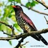 紫金鹃是一种羽色艳丽的小形杜鹃,体长约17厘米。雄鸟头、颈、胸和上体辉紫色,腹白色,具紫蓝色横斑;雌鸟上体淡铜绿色,下体白色,具淡褐色横斑。而相似种翠金鹃雄鸟上体和胸辉绿色,…全部>>