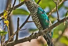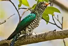 斑翅凤头鹃: 成鸟具羽冠,上体及头侧、翅、尾等黑色,具铁绿色亮辉,尾羽端部具白斑,两侧者形宽,中央者较狭;下体白色、淡灰白或略带棕黄色。虹膜褐至红褐色;嘴黑色;脚灰蓝黑色。…全部>>