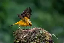 金色林鸲是鹟科、鸲属小型鸟类,体长12-15厘米。头顶至背黄橄榄绿色,眼先和头侧黑褐色,眉纹金橙黄色。肩、翅上小覆羽、腰、尾上覆羽和整个下体概为金橙黄色,两翅黑色。中央尾羽黑色,…全部>>