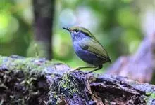 金冠地莺:形态与灰腹地莺相似,上体橄榄绿,前额至头顶渲染亮金黄色;下体几乎纯暗石板灰色,下嘴基部橙红色或橙黄色。虹膜褐色;上嘴角褐色,下嘴基部橙红色或深橙黄色直至嘴尖;跗跖和趾褐色,爪褐色。…全部>>
