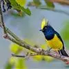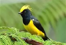 冕雀:共有4个亚种。体长20-21厘米,体重34-49克。具蓬松的黄色长型冠羽。雌鸟似雄鸟,但喉及胸深橄榄黄色,上体沾橄榄色。不会被误认的体大的黄色及黑色山雀。混群栖于原始林及次生林的林冠层,…全部>>